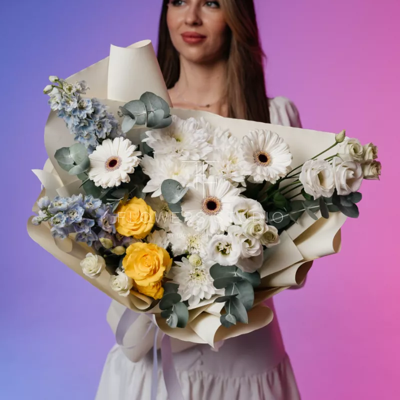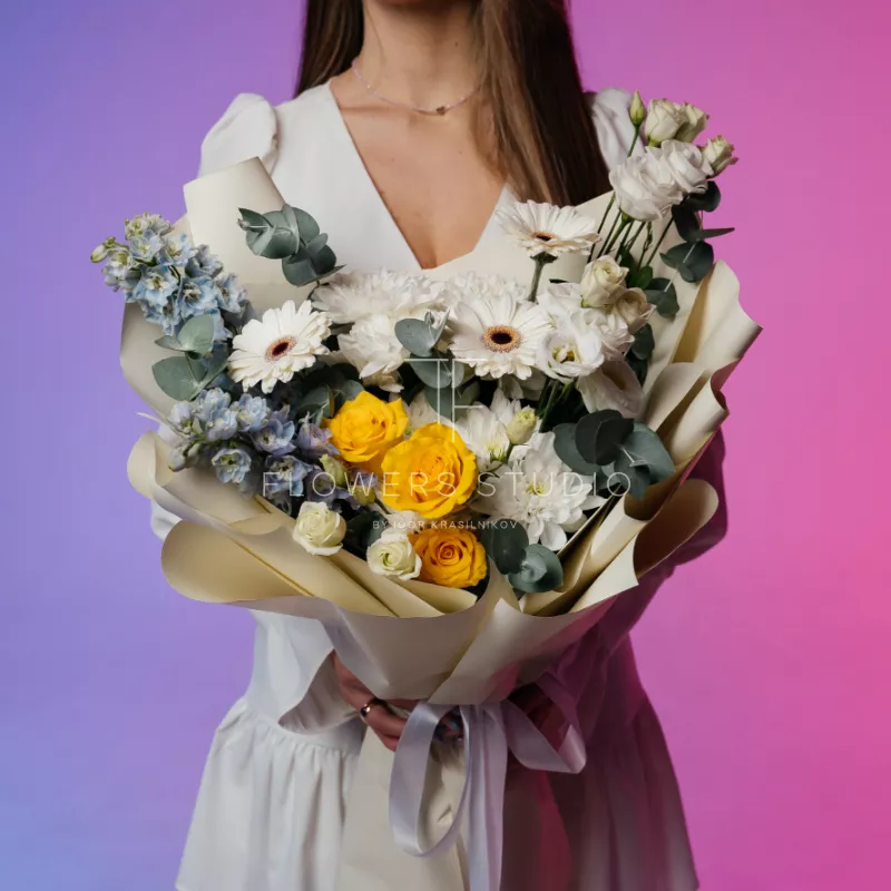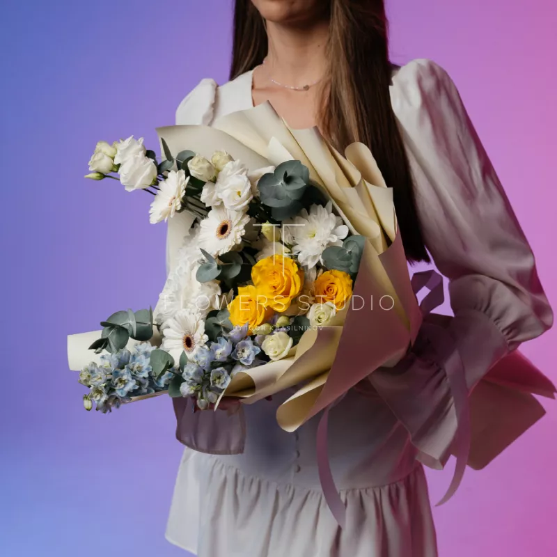 Заказала букет цветов "Воздушный фламинго". Заказывала на вкус своей дорогой мамочки. Она была в полном восторге. Цветы пришли как раз в то время, как и планировала. Ей очень всё понравилось. А раз ей понравилось, то и мне тоже. Спасибо большое за такие радости жизни